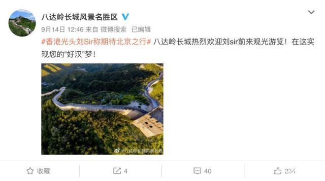 因坚定制止激进示威者而走红网络的香港警长“光头刘Sir”,近日接受媒体采访时表示,希望国庆期间能“到长城走一走,做一做好汉”,真挚回答再次刷上微博热搜。然而,这也让网友回想起往年长城国庆期间的“拥堵盛况”,纷纷搞笑留言劝其“三思”。9月16日,八达岭长城官方微信公号发文称,自今年6月1日起,八达岭长城已采取限流,高调回应“我们不堵,必须安排”。