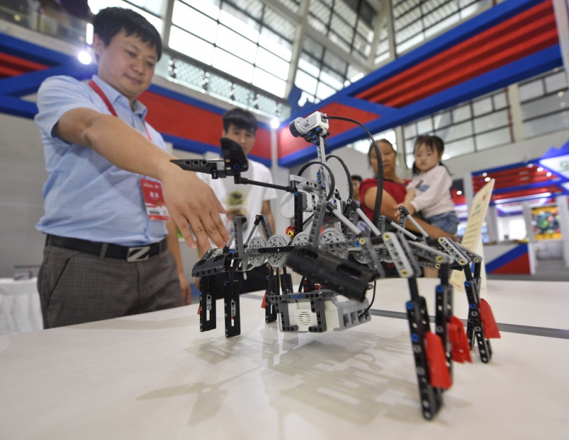 这是9月5日在科博会上拍摄的教育编程机器人。